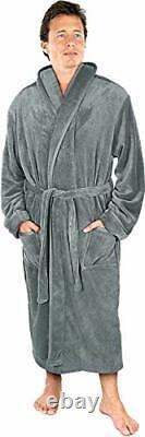 SHAWL COLLAR FLEECE BATHROBE - Super soft, plush, shawl collar fleece bathrobe made from coral fleece that offers great comfort whenever in use; perfect for lounging, relaxation and a great choice to wear after a tiring day at work. SOFT AND FLUFFY - The bathrobe is soft and fluffy, which can be worn all day long; the bathrobe carries a classic design, making it ideal for everyday usage. ADJUSTABLE WAIST BELT - Each bathrobe features an adjustable waist belt that assists in securely closing the robe from the front so that you can wear it with confidence.